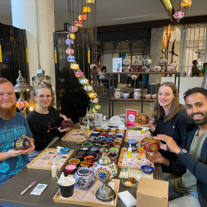 Welcome to Art Masterclass, the top destination for mosaic art enthusiasts worldwide. Immerse yourself in the captivating world of Turkish mosaic lamp making at our premier Australian studio. At Art Masterclass, we offer a unique and immersive experience where you'll not only gain skills but also leave with a radiant masterpiece. Join us at our studio to explore the wonders of mosaic art and Turkish culture. During our exclusive 2.5-hour experience, our expert instructors will guide you through the ancient techniques and vibrant colors that make Turkish mosaic lamps truly stunning. You'll discover the art of Turkish Mosaic and immerse yourself in traditional Turkish culture. Learn how to create your own beautiful mosaic lamp and take it home with you!