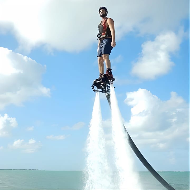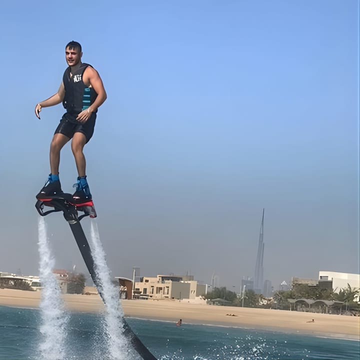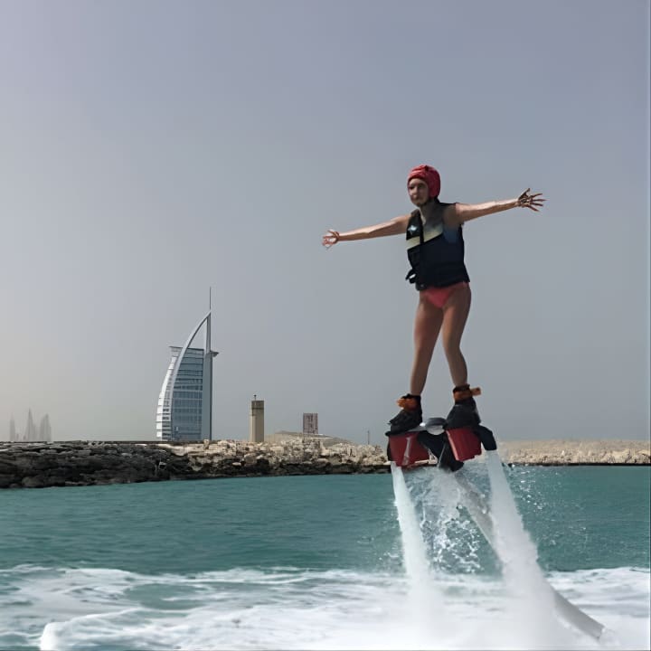 Ever dreamt of soaring above the waves or diving like a dolphin in Dubai's shimmering waters? With the Exclusive: Flyboard in Dubai, strap on jet-powered boots for the ultimate aquatic adventure! Safely tethered to a watercraft, you'll zoom up to 14m high or dive deep, all while floating safely thanks to your gear. No swimming skills? No worries! A life jacket's got you covered for a panic-free, exhilarating experience. Get your tickets for Exclusive: Flyboard in Dubai with Photos and Videos!