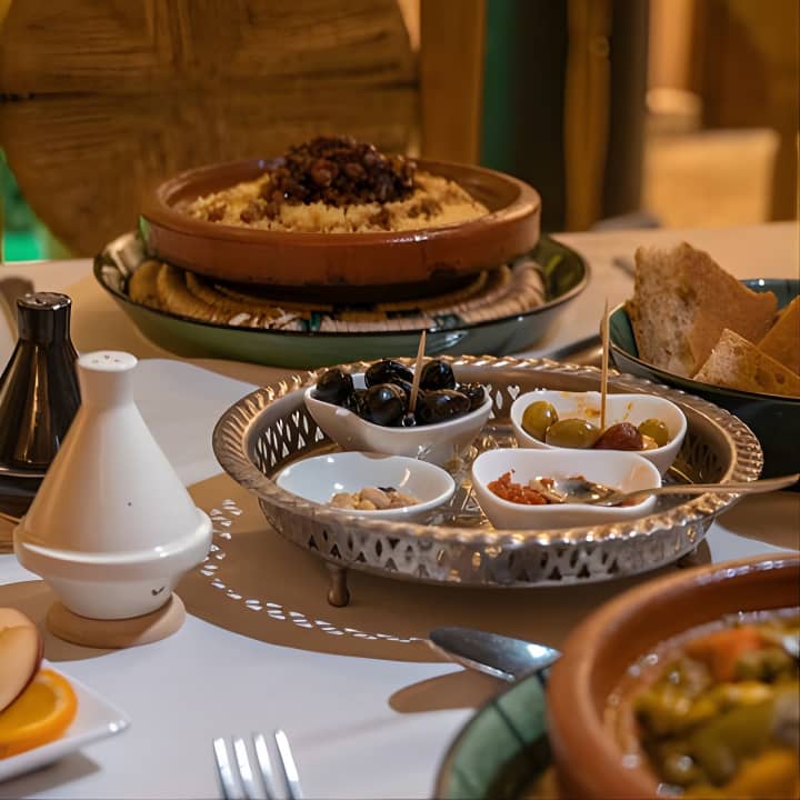 ✔️ Traditional Moroccan dinner (afternoon class) with dietary options (gluten-free, vegetarian).