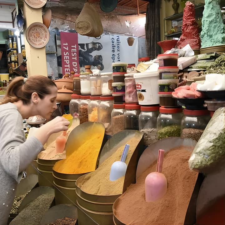 🌟 Dive into Moroccan culture as you shop for fresh ingredients in the bustling Mellah market.