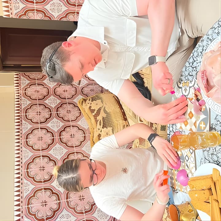 Rejoins Fatiha et Samira pour une journée de cuisine délicieuse à Marrakech ! Plonge dans A Moroccan Culinary Adventure with Local Chefs une aventure culinaire authentique avec des chefs locaux. Partage des rires, apprends à préparer des plats marocains savoureux, et profite de moments de qualité avec une famille amicale. Commence par un thé berbère, puis mets-toi à la pâte avec des légumes frais du marché et des épices aromatiques pour créer le tagine parfait. Prends tes billets pour Cours de cuisine à Marrakech avec Fatiha et Samira !