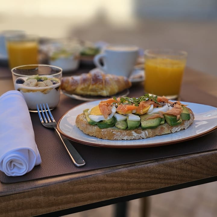 🍽️ Un brunch delicioso con opciones como huevos Benedict, desayuno americano, desayuno inglés o tostada con aguacate y salmón.