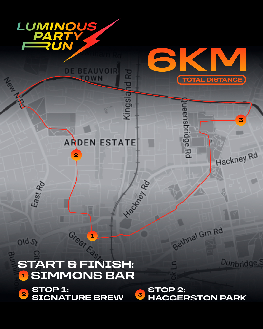📍 Starting point: Simmons Bar | Old Street, 233a Old St, London EC1V 9HE (this is also where the run ends, and where you can safely leave your personal belongings before the run)